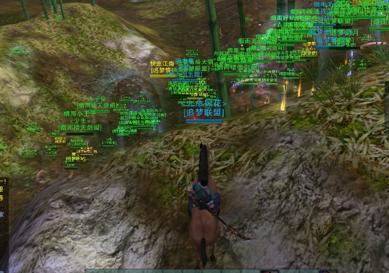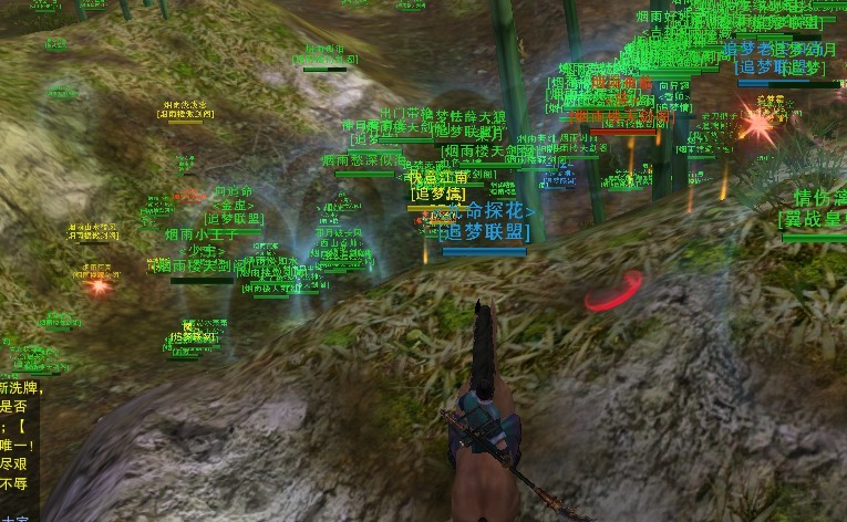 追梦和烟雨楼在BOSS点发生战斗,追梦占据有利位置,但是烟雨楼人数是追梦的2倍!