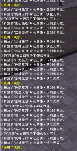 终于有喜剧了,结果是令人振奋的,无效和偏离的攻击能产生嗔怒,而且其触发几率非常高,2个怪的时候,使用剑神无我,另外配合输出技能可以保持全程嗔怒。至于剑转和珠袖,依然不产生套装效果,由此可见这2个技能对于触发性状态没有作用。另外注意嗔怒的说明,就不难理解为什么可以产生嗔怒了。