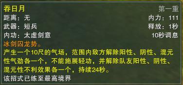 本来的神级技能的,封住轻功,包括后跳(这个太逆天了)可惜效果延迟,眼看丢到人家脚下了,一个蹑云逐月就走了,而且吞不掉扶摇BUFF,悲剧了。消除自己不利BUFF,很可惜的是8秒后才能消除一个PVP废物属性。消除对方有力BUFF,这个还有点用,基本上就是吞万花的春泥跟毫针了。至于吞纯阳的吐故纳新跟和尚的反弹,我看,没那个必要。