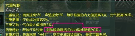 将四重阵的“若被疗伤过量,则阵眼每秒恢复内力最大值的0.2%。”修改为“若被疗伤过量,则阵眼施展招式内力消耗降低20%。”