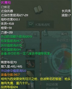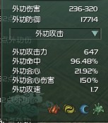 外功攻击647、外功伤害236-320、武器伤害127-211。