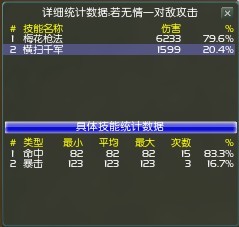 可以看到,技能伤害稳定的维持在82点。123/150%=82,符合面板外功会心伤害150%。