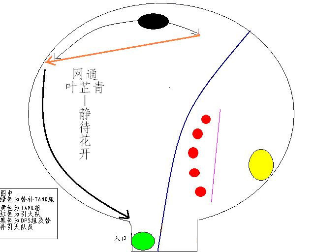 当餐风死了之后,之前已经说过,场中会再出现一条风,这个时候DPS集合在黑色区域,当龙卷风来的时候向第一阶段一样扩散(近战治疗向左边箭头移动,远程向右边箭头移动,)远程DPS从右边箭头到橘黄色箭头的过程中完全可以判断出龙卷风追的目标,近战DPS从黑色区域到橘黄色箭头位置时,也应该能判断出龙卷风的目标,没有被追的目标回到黑色区域,被追的目标则朝入口移动,龙卷风切换目标则回到黑色区域,切记不可越过蓝线(1,万一出烧云很危险;2,第二阶段应尽量把龙卷风拉的远离TANK组及引火队员)。冰心七秀,花间万花全部切为治疗,这个时候第一个碧空云雀应该也消失了,没关系,再招一个就成(不幸被风剐死的话就再招,之前说过多带些的),掉血的DPS回到黑色区域后碧空云雀会把你刚才掉的血回满。坚持10分钟(和谐过后不到10分钟),龙卷风就会消失,第二阶段结束。然后将迎来胜利的曙光—最简单的第三阶段。