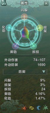 还是上面的属性图,测试目标改为小七秀一只。防御如下: