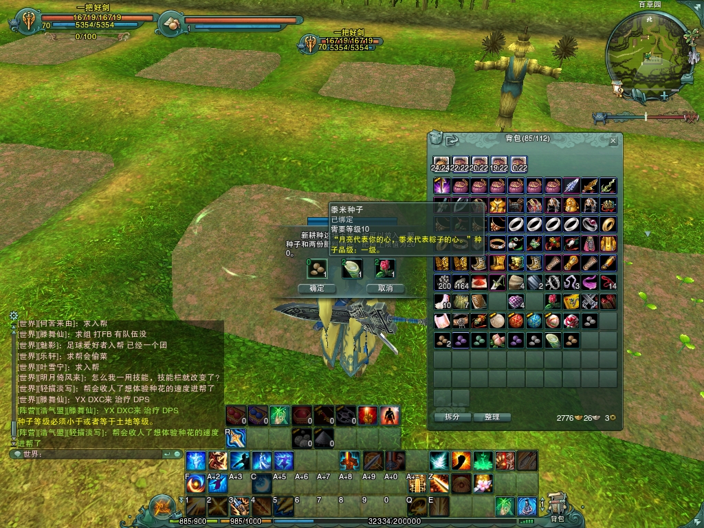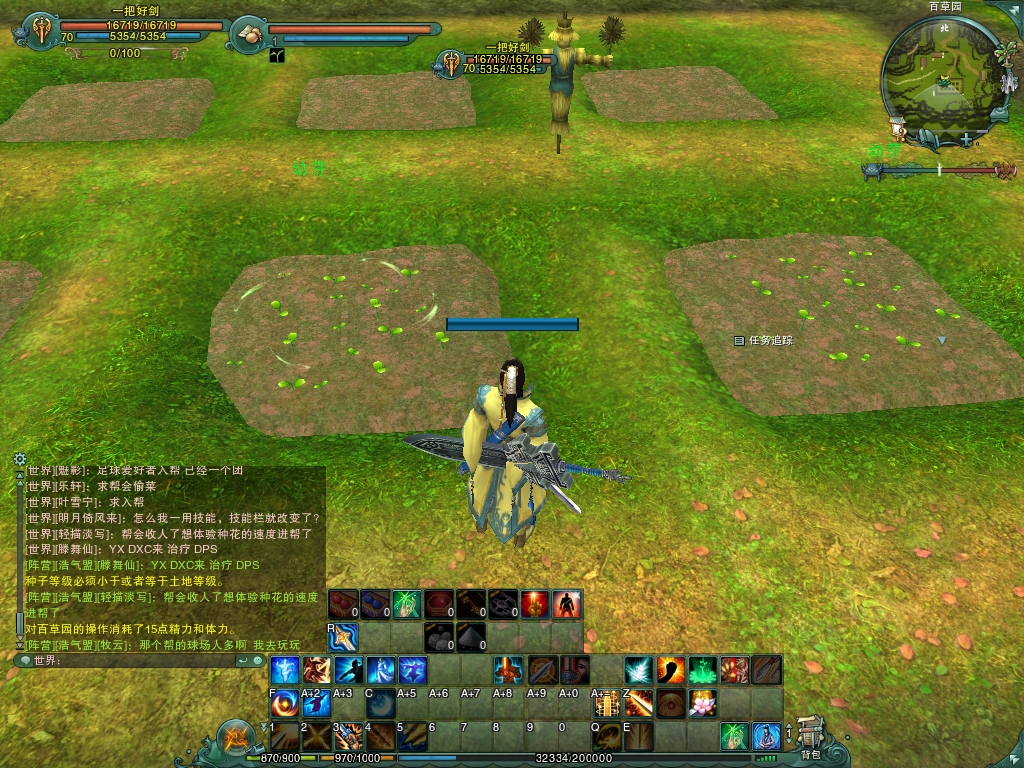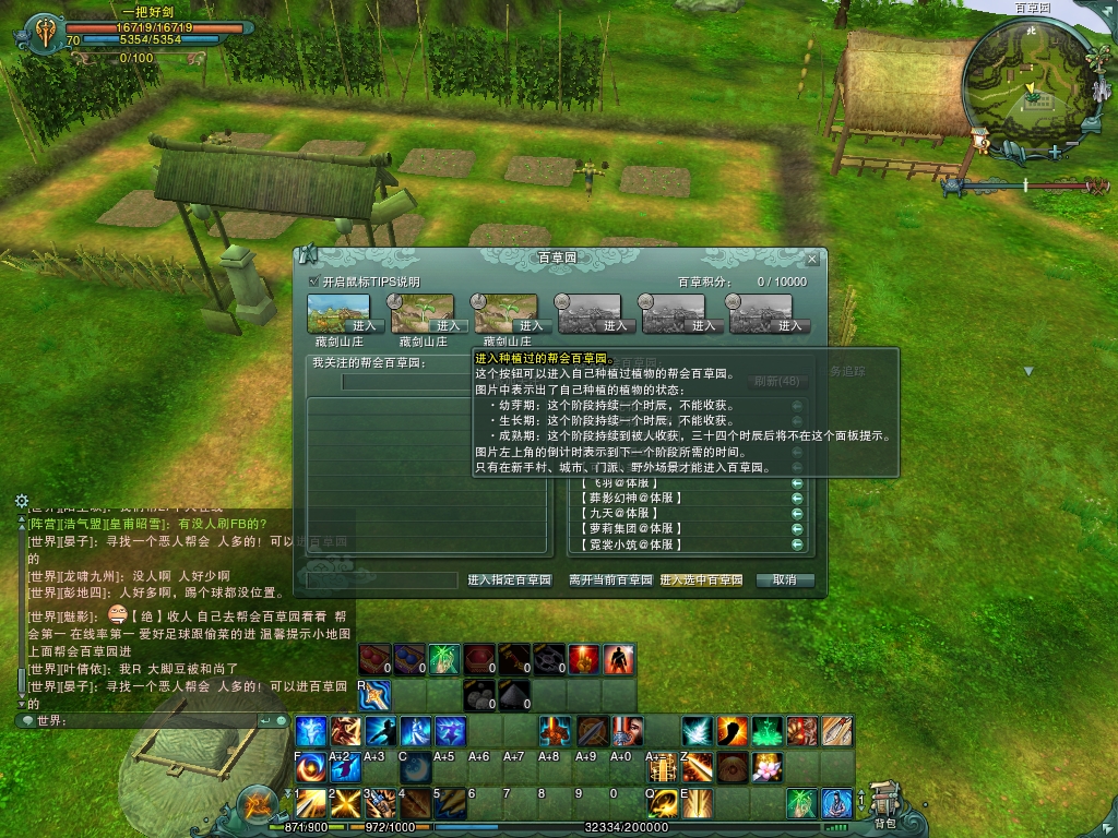 看到其他人了 不是我帮里的 不知道这地方难道是公用的? 多了一块地被种了 小地图上有叶子的才是自己种的。。。。