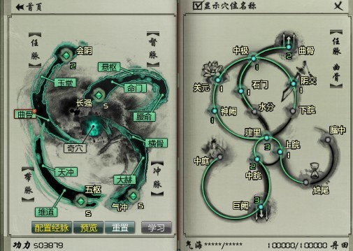 以下图片中展示的点法放弃了轻功减CD方面的穴位以及督脉腰俞里面关于闪避以及招架的穴位,内功切换也没点!