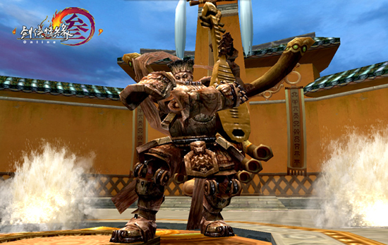 空旷的天王殿中央,手持乐器,体型高大,面相不怒自威的木甲天王即是此秘境首领——东方持国天。其以手中乐器为武器,弹奏乐器琴音为攻击手段,此罕见攻击方式,将留待游戏更新后玩家自己去体验和感受。