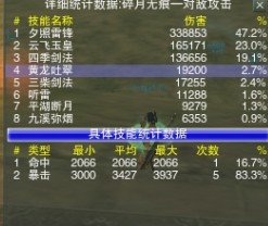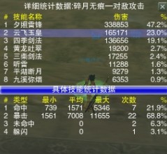 简单的分析下数据,其中闪躲是BOSS的自带属性,对于外功职业来说无法避免。亮点在于98的命中状态,技能的未命中仅仅在6%左右!!或许一次输出的统计不够彻底,但是至少侧面反映了会心对于命中的修正作用(我是这么觉得的,至于原因不是很清楚)。