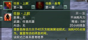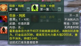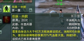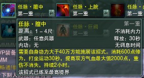 在看经脉畅行里, 这些就是传说中的震后技能了。的确是震的。大家看要求,需求40W以上功力,施展后消耗修为。