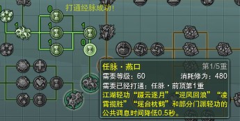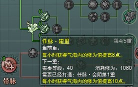 原曲骨一线,第一个穴位改成了建里,点满后每小时多获得 10点修为。