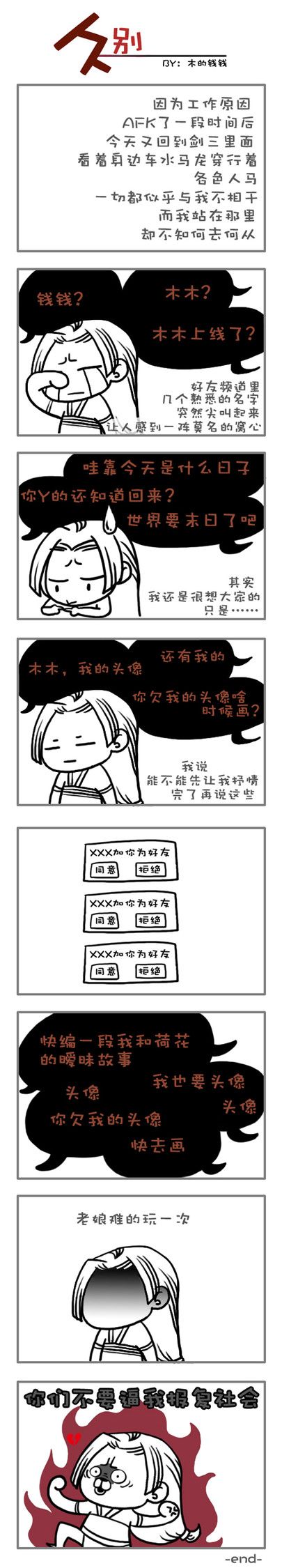 人家今天鬼使神差的点开了剑三,兴奋的出现在N久以前下线的那个地方,还在好友名单里发现了多日不见的好朋友。
