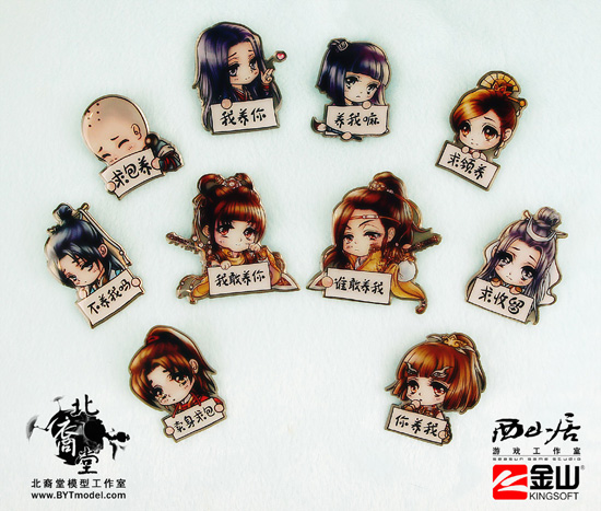 国产3D武侠网游颠覆大作《剑侠情缘网络版叁》(下称《剑网3》)自公测以来,其独特的武侠背景故事以及浓郁的中国古典文化气息深受广大玩家的厚爱。为回馈广大喜爱《剑网3》的玩家,让江湖走进生活,让武侠不再是传说,北裔堂模型工作室与《剑网3》的版权方金山软件西山居工作室联手打造,合作开发了游戏最新趣味周边产品——《剑网3》六大门派求**Q版金属胸章。