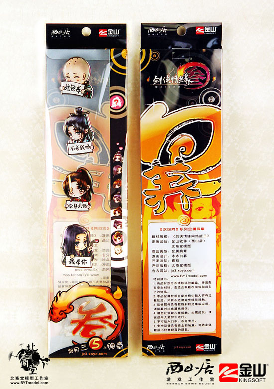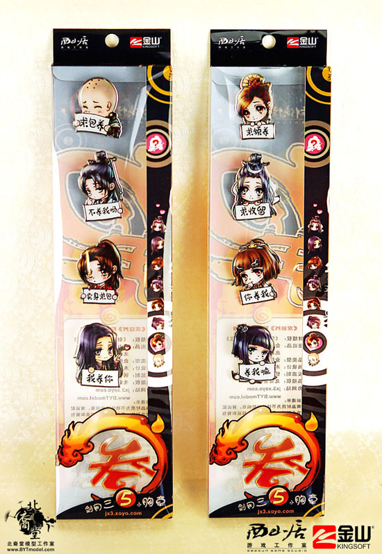 北裔堂模型工作室在看到这些可爱形象之后,就决定将他们制作成可与玩家随身相伴的小物件,让他们可爱的形象可以随时伴随着有爱的宅男腐女们一起生活、工作、娱乐。把他们装饰在服装和包包上出去逛街游玩,不仅给自己增添了一份个性化的装点,更能让身边的朋友体会到你的武侠情愫。当朋友们看到这些可爱的小家伙,不禁也会被他们超萌的小样儿萌的天晕地转,身为主人的你,是不是很有成就感呢?
