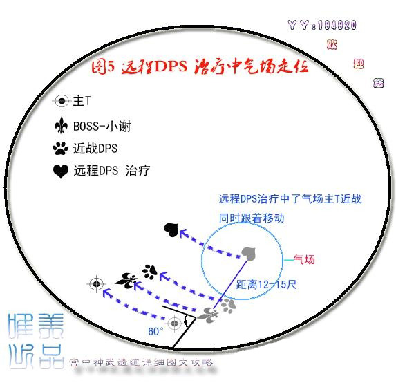 切勿治疗和远DPS 走到BOSS前面,治疗和远DPS出气场前,T一定要比他们反应快,先啦好位置,第1阶段考验T的灵活和走位,其他人员的走位和DPS最大化输出。