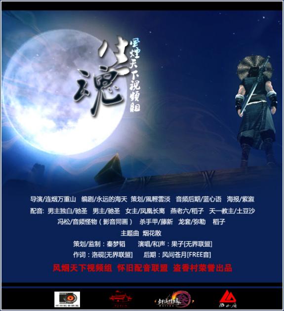 风烟天下视频组新作《生魂》,是我们制作的杀手系列其中一部作品,与怀旧配音联盟合作完成。在这部作品里,有微妙的男女情感,有高超的杀人技巧,还有杀手世界的灰暗。感谢FREE音与无界联盟联合完成的的主题曲《烟花散》.凄美的歌声足以让人感同身受。欢迎大家观赏,如果喜欢就顶一下~如果觉得哪里不够好,尽管提出,我们会继续努力的.