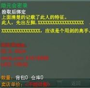 其实这个玩家资料好好比一个ID我觉得这个对官方不难做到补充一点要是光是花钱就能知道击杀你的玩家那就太容易了,也就失去神秘感了。去调查的玩家必须拥有“隐元令”调查一次会消耗一个,获得方法当然是帮“隐元会”做事做什么事以后YY反正获取途径不能太简单。