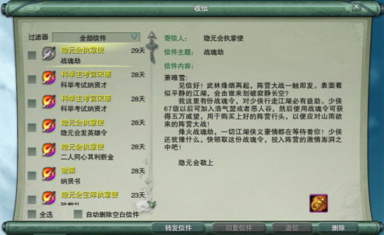 提示:"战魂令"是通过邮件的方式发送的,记得到信使处领取哦!