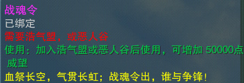 阵营玩家:已经加入阵营的玩家,获得"战魂令"后,可以直接使用获得50000点威望。