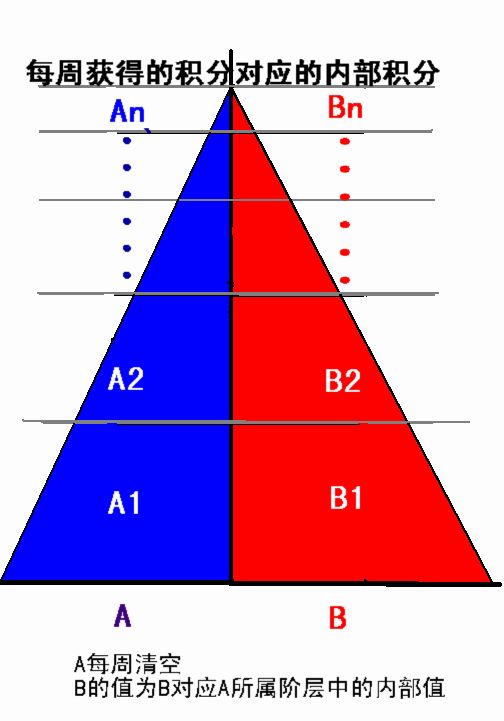 若本周你积攒了6000的积分,到周日时系统会将所有玩家按阵营排名次(层次越往上的人数越小),而你的积分排在了A2层,然后把你转到相对应的B2层里,在B层里你会得到你本周系统给你的内部积分,所以可以解释为什么有的朋友刷1.4w的积分却和刷了8000积分的升到一样的战阶,因为你们都已经处在第一阶层了,所以得到的分数是一样的,而一星期第一阶层的分数也只能够令你们升到5阶。