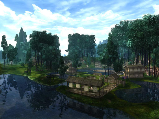 兰亭书院继续向落雁峰走路过一大片竹林,名紫竹林,紫竹林坐落两大庭院,分别是闻到草堂和烟雨居舍;目前谢烟客把守这里。