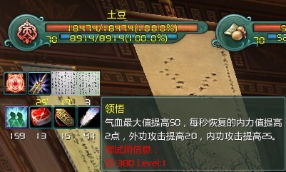 道德经-卷一(清心寡欲)——血上限提高50,每秒回蓝2点,外功攻击提高20,内功攻击提高25,8本白书,其中一本是碑铭。效果持续2小时;