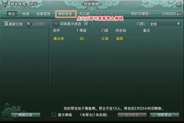 1、所有帮会的帮众都可以领取,但没有在线的玩家则不能领取俸钱。