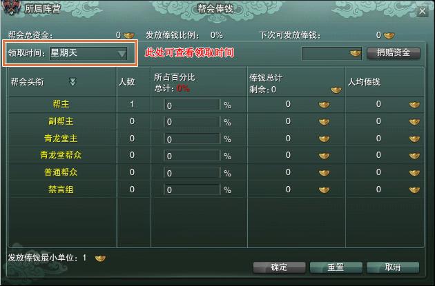5、帮众需要根据之前帮主设定的金额领取帮会俸钱,并且领取俸钱单位是金,不足1金的不予计算。