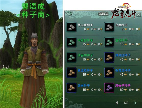 帮会领地中有不少的土地可以用来种菜哦,但是帮会成员首先需要在帮会领地中的种子商郭语成处购买各种种子。