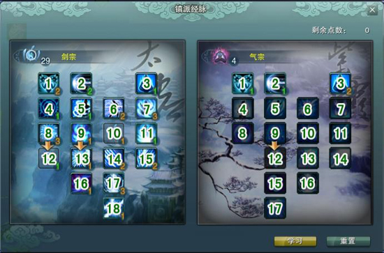 3.“四象轮回”,新增效果:若招式会心则额外蓄气1格,并且原减速效果改为“缠足”,降低移动速度提高至40%。对于锁足定身的额外效果可激活镇派经脉获得。