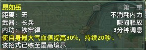 经测试此技能不仅血上限+30%,而且血下限也加。3分钟内可以主动回复30%的血。