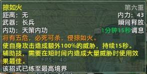 8秒定军,8尺距离,伤害加倍,几率重置。