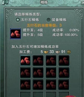 3、6级石头:1个五级石头+3个五级石头=1个六级石头(共消耗4个五级石头),每个加工费22.4899金,每个消耗精力5点;