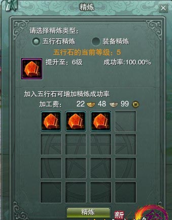 为避免不必要的损失,本精炼以同种属性的石头测试,相克的石头中,被克得不能做被炼。
