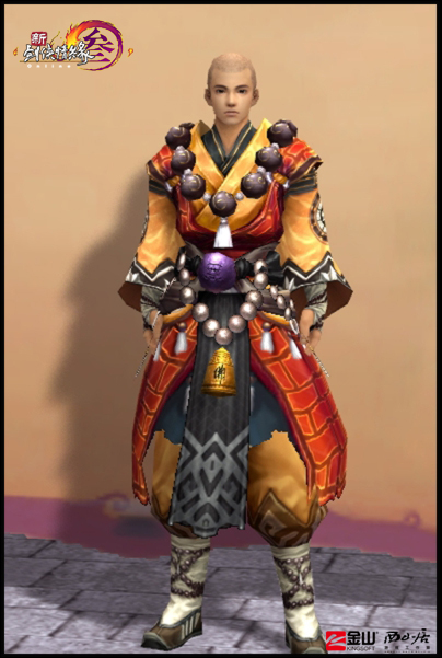 天下武功出少林。侠士一旦拜入少林则必须剃度,但这丝毫不影响他们的刚硬之气,当他们穿上蚩灵套装的时候,更是霸气十足。