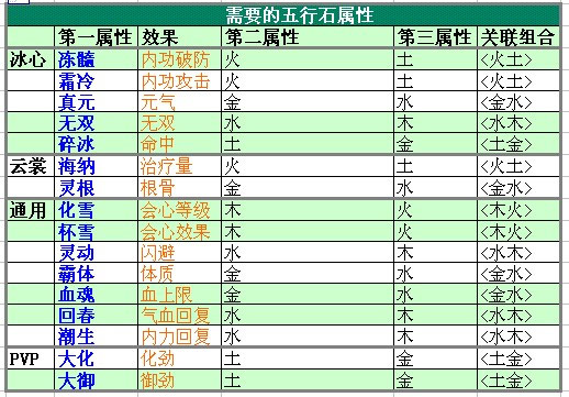 具体第二,第三属性所需要的五行石类别,取决于第一属性的词条