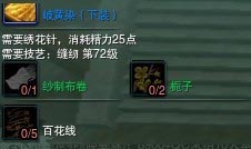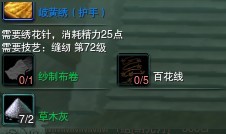 这套附魔,所需要的中间材料,纱制布卷,所需材料是5个方纹绫+5个轻容纱,一组大约30+G,可以做4个,也就是60到70G有4个纱制布卷,附加的一些小材料,一个附魔就可以卖70G左右。就算没有赚,基本也是能回本的。而且做不了十几个,恭喜你,你80了。