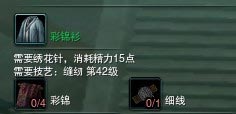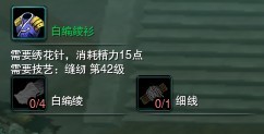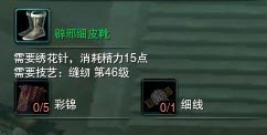 材料比较方便,因为我有其他号挖肉做饺子,因为狼皮熊皮虎皮神马的一大堆。细线是NPC出售的。