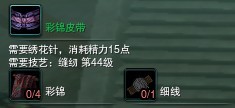 44到46,彩锦皮带。(15精力24经验)但是由于等级上升,如果继续做彩锦皮带,经验会逐级递减。