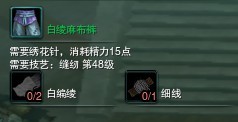 同样,到48级以后,推荐换成白绫麻布裤。(15精力24经验)