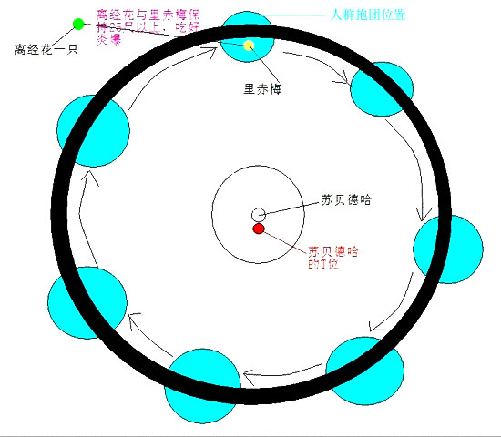 里赤梅会随机释放冰弹有可能是T有可能是离经炮灰处炮灰和拉苏贝德哈的T之外所有人都和里赤梅抱团抱紧出了冰弹就顺时针走项下一个位置(冰圈爆炸以后的实际范围会大一些一定要注意不要贴着冰圈站)