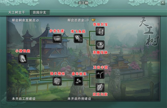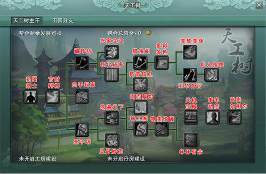 (1)天工树的发展需要消耗帮会发展点和帮会资金。