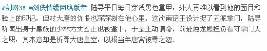 陆寻平日每日穿戴黑色重甲,外人再难以看到他的面目和脸上的印记,但对大唐的仇恨也深深刻在他心里。这次南诏王设计捉了五派掌门,陆寻听闻出身于皇族的少林方丈玄正也被拿下,于是主动请命,前赴烛龙殿担负看守掌门人之职,其本意却是折辱大唐皇室,以报当年唐宫被辱之怨。