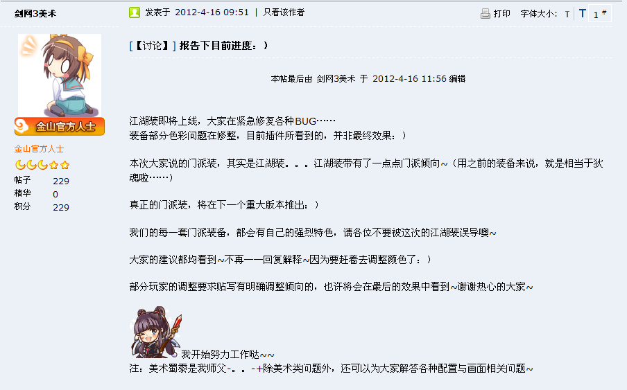部分玩家的调整要求贴写有明确调整倾向的,也许将会在最后的效果中看到~谢谢热心的大家~