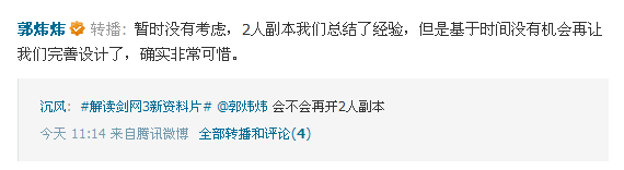 郭炜炜:暂时没有考虑,2人副本我们总结了经验,但是基于时间没有机会再让我们完善设计了,确实非常可惜