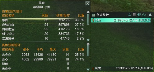 当然这是理想状态,不过我想大多的秀秀都能做到15秒内重新叠上3 重急曲,同样的节省了大量DPS,而大家可以在我的输出循环中看到暴急曲都是在剑气长江后,这保证了暴急曲的时候,身上有10%破防加成,达到了利益最大化,碎冰BUFF的时间足够我们释放2个技能,这个时候我的选择就是满重剑舞的剑破虚空。满堂,龙池,剑影留痕,剑心通明,繁音急节等不占用GCD时间的技能大家可以看情况使用。