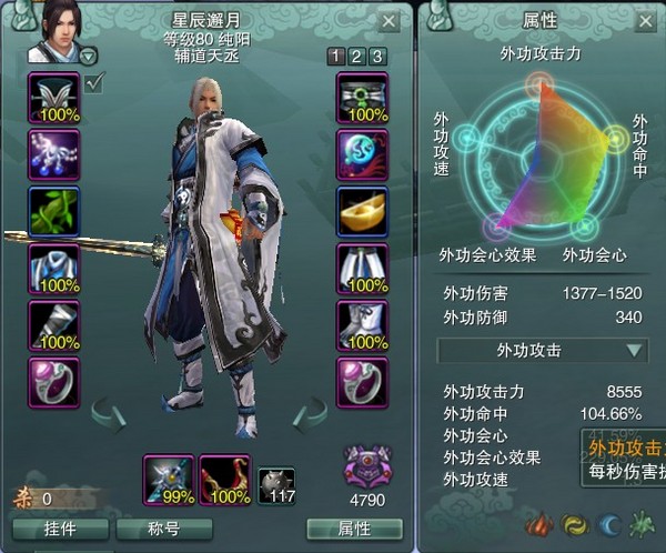 这是我的人物属性图,当然,这装备并没有毕业,还差个暗器玄象,吐槽一下,我们团从来没有见过玄象,好不容易买了个瑰石,连飞猿都开不出来。