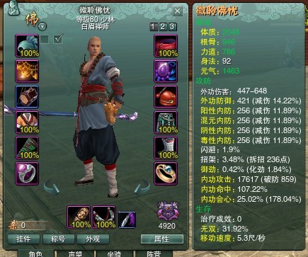 通用篇已经说过破防是和尚收益最高的属性,所以PVE和尚优先攻击、破防、命中、无双几个属性。