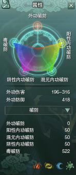 属性优先选择破防堆过500+,命中100%,武器打的是五级见切、大化、腐心。