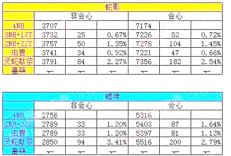 从图表各技能的增益来看,此类buff对Dot增益非常小,而对蝎心增益较为明显。不仅是比例相差悬殊,而且是增加的伤害值(百足、蛇影、蟾啸按实际伤害次数去乘以)也相差明显。