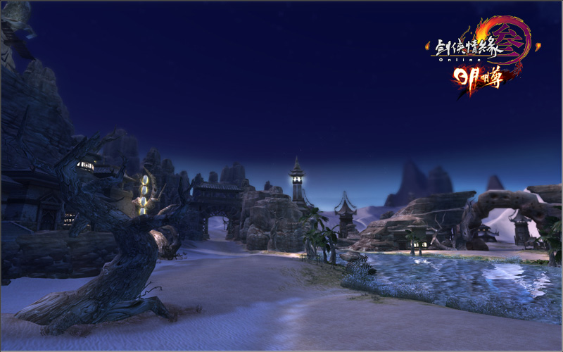 《剑网3》“日月明尊”开创了一个空前宏伟的西域版图,八大全新场景从绿洲、圣墓山、死亡之海、不归之海、往生涧等直达大唐疆土最西方。诸位侠士可骑乘沙漠之舟骆驼自由探索这片未知的大地。狭长的死亡之海是广袤的荒漠,美艳却危险的狼毒花庞据着唯一的水源。不归之海时常出现海市蜃楼的奇观,处处都是流沙的陷阱,却又生长着守护爱情的”三生树“。当侠士登上耸立在茫茫沙海中的巨大石山,明教隐居的圣地就在眼前,宏伟的圣殿定让你过目不忘。山下是宛如世外桃源的往生涧,这里没有风沙的侵扰,却有清澈的泉水和高矮错落的多种植被。思浑河畔的胡杨林风景如画,明教圣女陆烟儿在那里迈开了与中原和解的第一步…